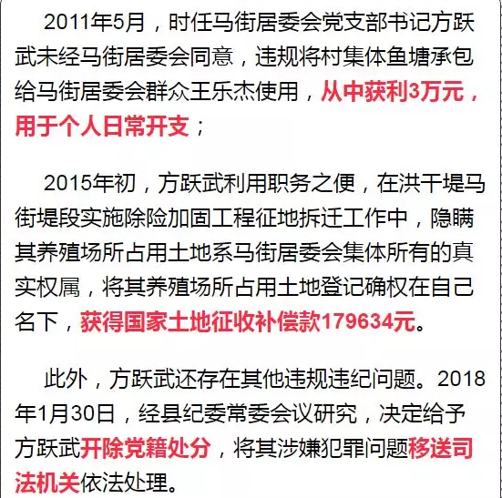 方集镇马街居委会 原党支部书记方跃武 非法占有村集体鱼塘承包费等问题
