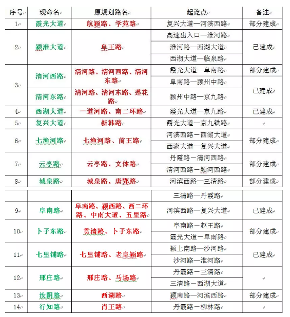 为切实规范阜城道路名称,根据《安徽省地名管理办法》和《阜阳市城市总体规划(2012-2030)》,市政府在广泛征求意见和听证、公示的基础上,对阜城规划区内部分道路名称进行了调整,并经2018年6月29日市政府第29次常务会议研究通过,现予以公布。