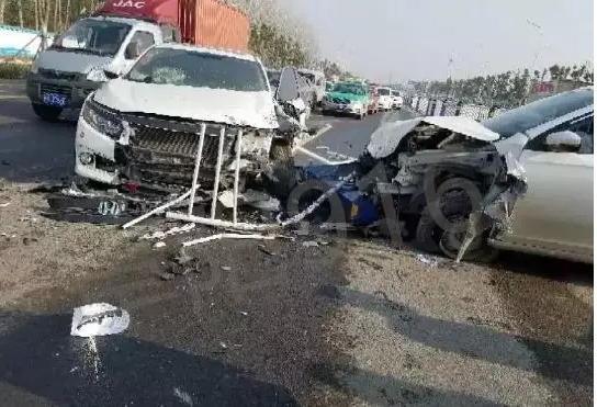 今天(16日)上午九点半左右新向阳路大桥南1千米发生三车事故一辆车撞断护栏和对向驶来的车辆相撞两车的安全气囊都爆出来了撞飞的护栏还殃及了一辆厢货所幸只是受到轻微损伤事故没有造成人员伤亡目前,事故原因正