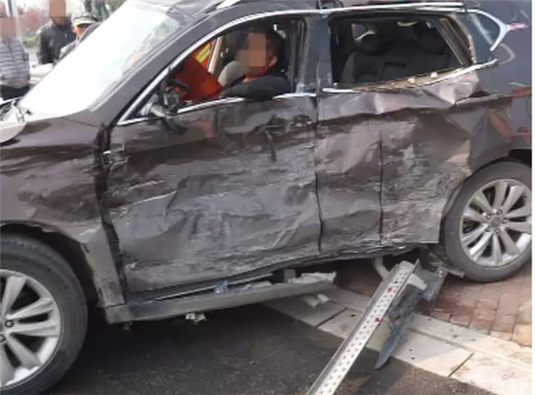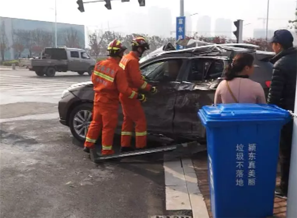 昨日(24日)中午12时30分许颍东开发区众兴路与东盛路交叉口发生一起车祸一辆轿车与一辆货车在十字路口相撞轿车上有5人受伤辖区公安、消防、120等救援力量赶到了现场现场一辆棕色的大货车停在路边轿车被撞